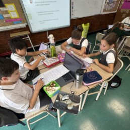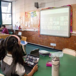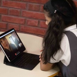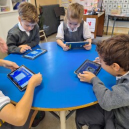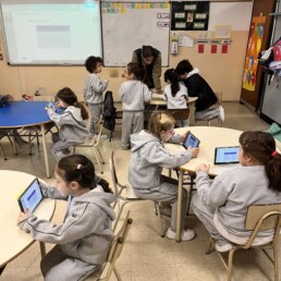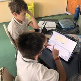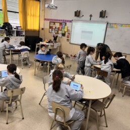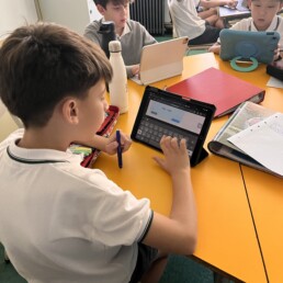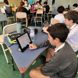 P1 students use the school devices to work on Seesaw and carry out project-based-learning tasks and metacognition activities independently.
