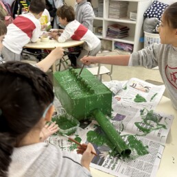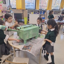 Within the framework of the dinosaurs project, “Stomping into the Past”, P1 students worked collaboratively to build the final product of this project. Thus, they created dinosaurs with recyclable material, which they later exhibited in the school corridors to share their learning with First Cycle students.